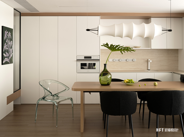 精装房焕新构想中,以开放式西厨与餐岛一体为核心重塑空间脉络,为双孩家庭打造充满对话感的成长天地。当父母在岛台洗切烹饪时,视线与客厅无缝衔接,既能随时照看孩子动态,又可轻松辅导功课,流畅动线让陪伴自然发生。