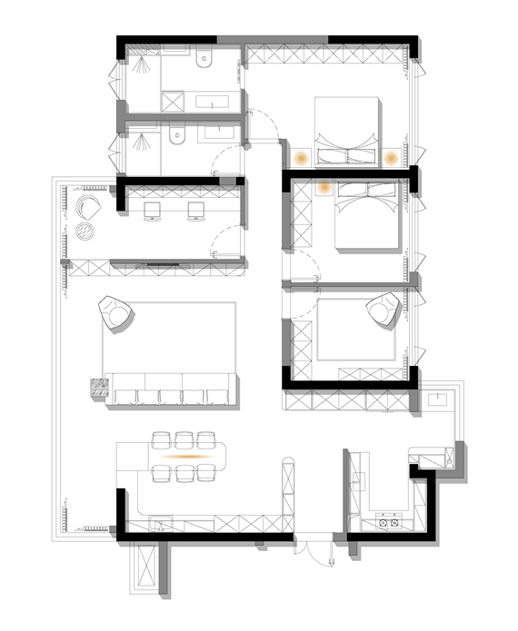 Designer Style / 类型:精装改造+全案全包 Designer Agency / 团队:成都宏福樘设计 Address / 地址:成都 · 天恒傲云天府