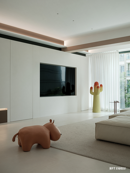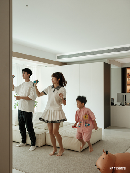 本案是为教师、金融自媒体夫妇与其四岁儿子打造的亲子宅。设计以白、木色为主调,构建出一个纯粹、松弛的基底。其核心并非强烈的风格表达,而是服务于居者本身。通过周全的适童化细节、灵活的布局与充足的收纳,让这个家能安全包容孩子的探索与成长,也悉心呵护家人的互动与陪伴。