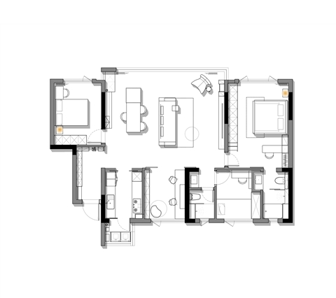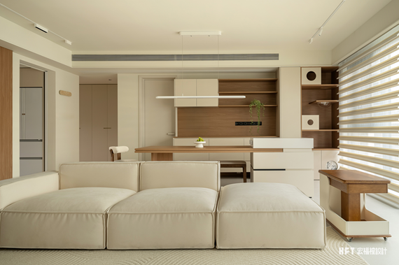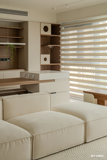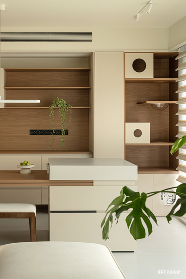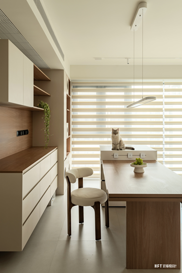 对于这对90后夫妻而言,家是理性与温情的平衡。男主人作为电子工程师,偏爱内敛实用的科技感。两人都注重整洁,希望空间色调舒缓而平和。三只猫的存在,为家中增添了几分灵动的生气。在保留三间卧室的基础上,书房与客厅通过开放互通的设计,让办公与生活自然地联结起来。既满足偶尔工作的需求,也维系着家人间随时可见的陪伴。