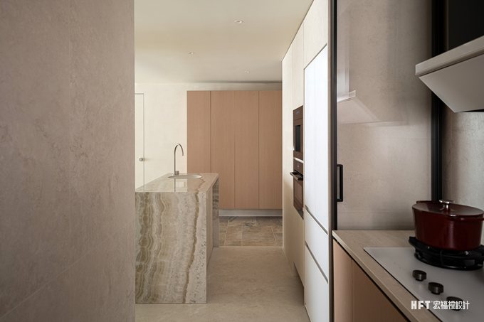 1. 生活阳台与厨房合并后释放部分面积,设计开放式西厨区域
