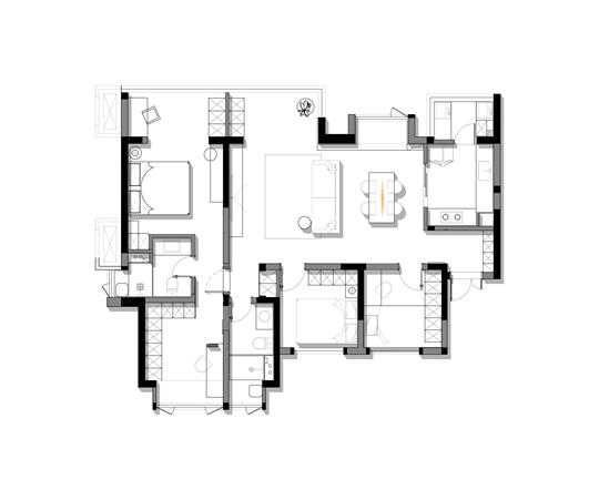 4. 一间次卧与主卧合并,改造为集睡眠区、衣帽间、书房、卫生间一体的舒适套房