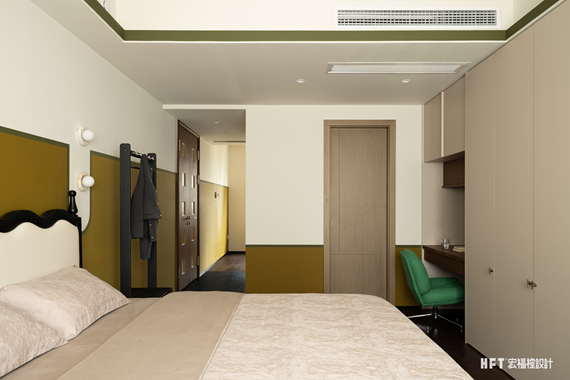 2. 一间卧室拆除隔墙并纳入主卧,改造为多功能套房使用