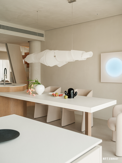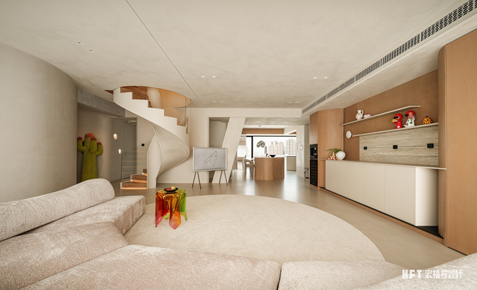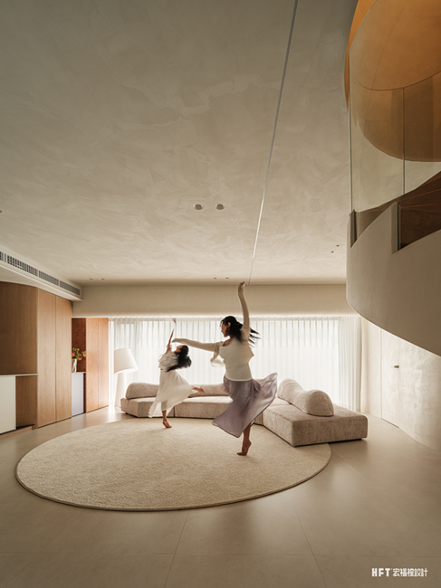 210㎡跃层空间以暖色材质构筑温馨基调,呼应屋主舞蹈教师的职业特质。设计通过流动的弧形语言演绎空间柔美,营造具有包裹感的温度居所。巧妙整合公共区域有机联动,打破边界后呈现出开阔自然的复合型生活场域。