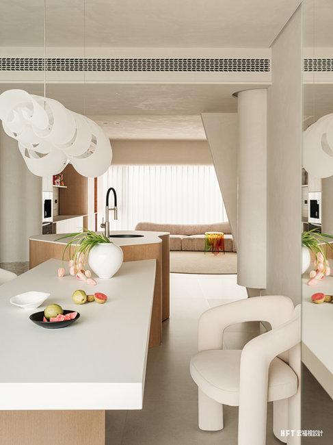 2. 拆除厨房局部墙体,加入岛台,与餐厅形成开放连接的互动状态