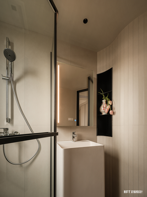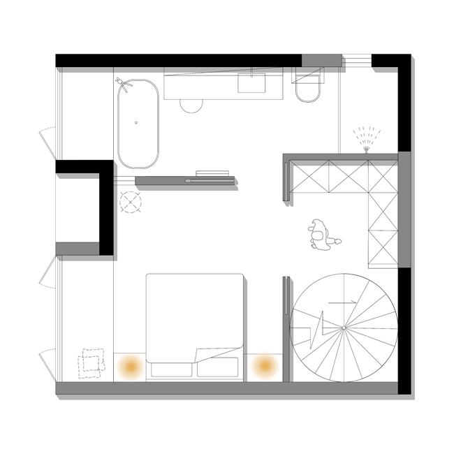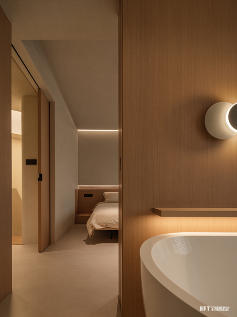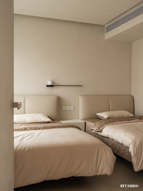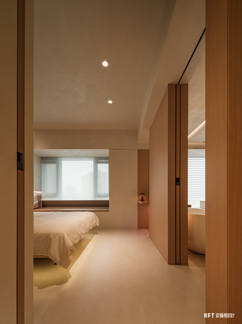 新建楼梯后优化动线,重新分配二楼主卧面积,将其改造为与屋主生活习惯适宜的舒适套房