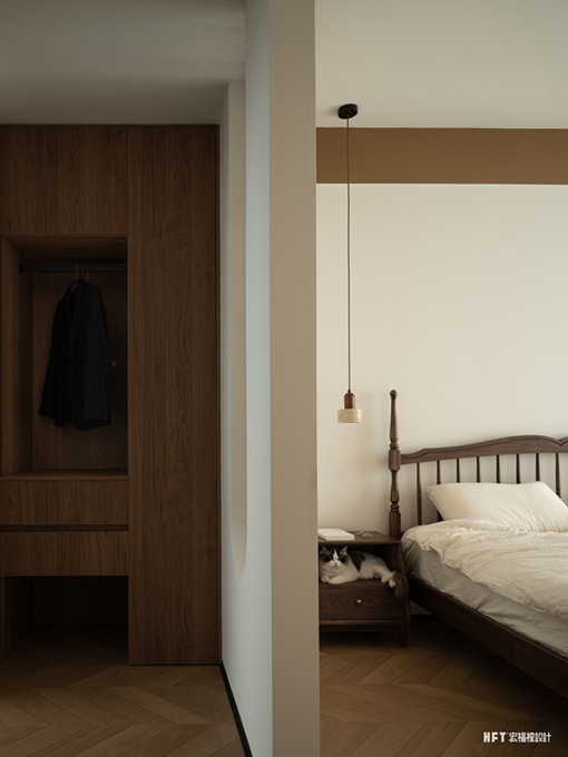 6. 主卧设计隔断,独立衣帽挂放区的同时增强睡眠区空间隐私