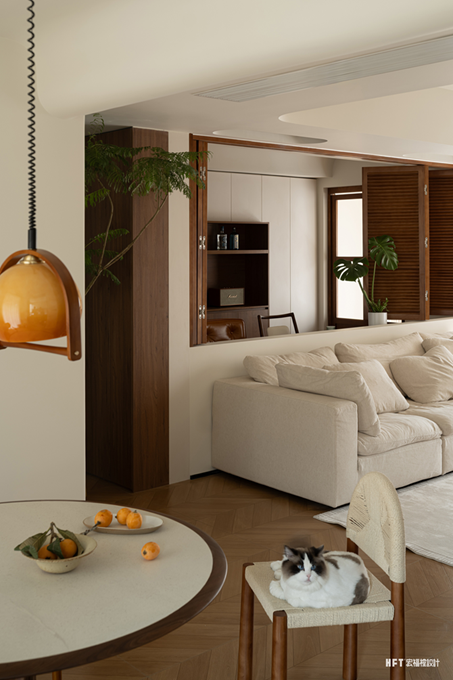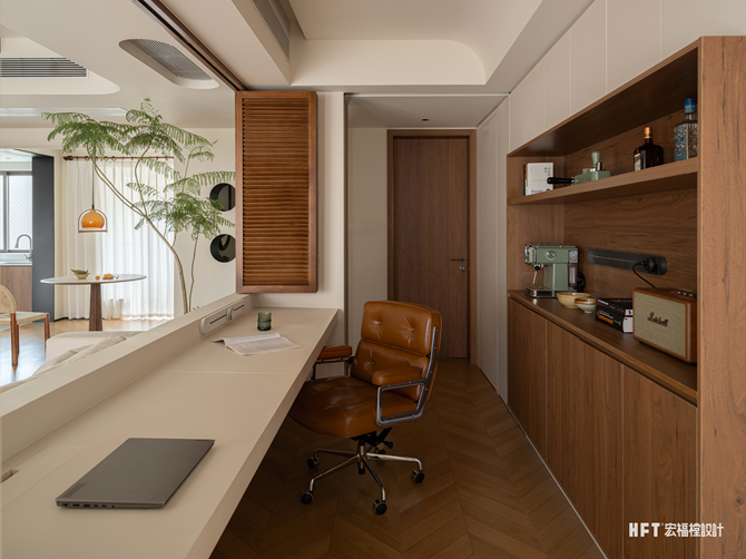 在自然与现代的平衡中,以温润胡桃木色为基调,构建出一个松弛有度的居家场景。空间不止于功能,更着眼于两人之间的互动与陪伴,木质肌理悄然延伸出宁静而亲密的氛围,诠释生活本真的从容与温暖。