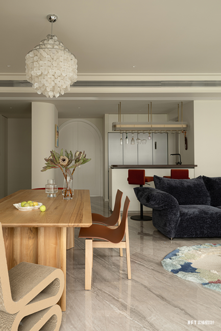 精装房改造,着眼于“松弛生活感”的营造,凭借柔美曲线与温润肌理的材质,构建出疏朗有致且令人安然的居住空间。既保留法式风韵的优雅格调,又融入日常起居的温暖质地,让家不再仅是栖身之处,而成为一处可被感知与触摸的温柔容器,于细微处浸润着从容与惬意的时光。