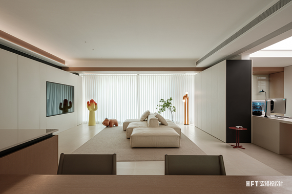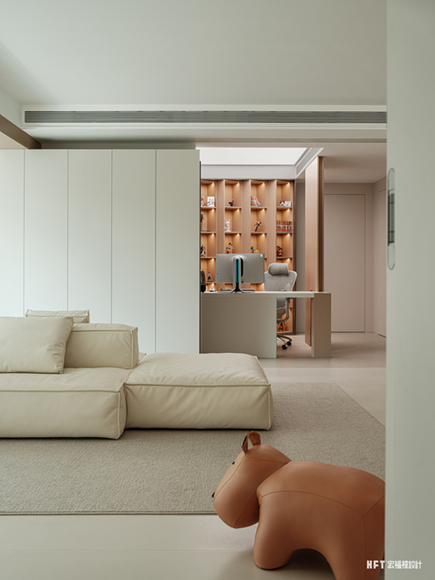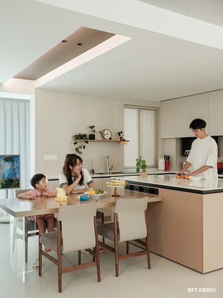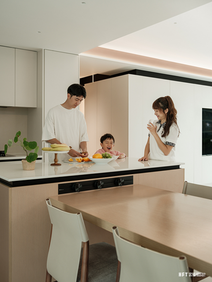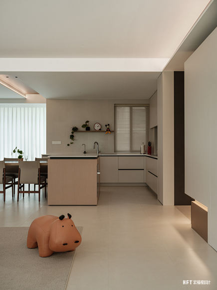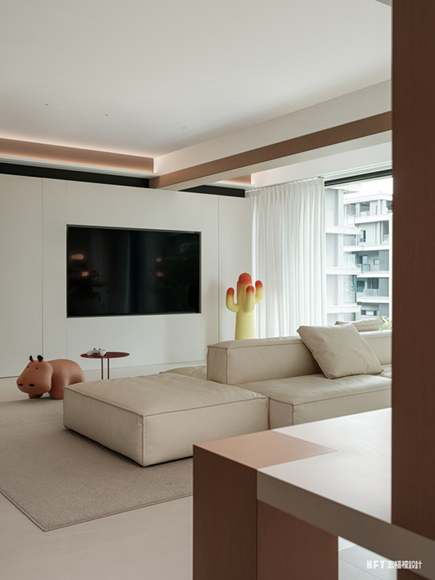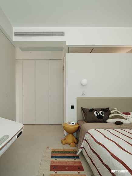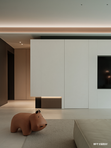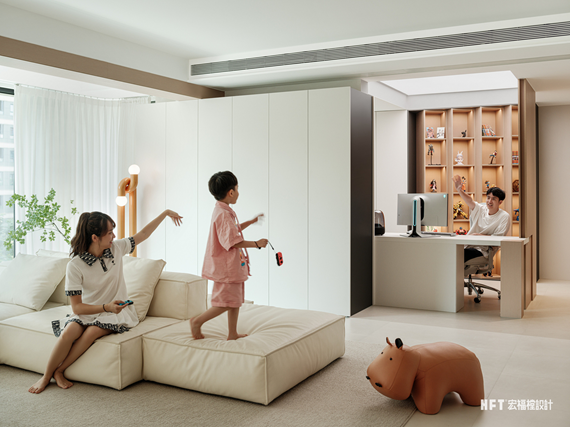 本案是为教师、金融自媒体夫妇与其四岁儿子打造的亲子宅。设计以白、木色为主调,构建出一个纯粹、松弛的基底。其核心并非强烈的风格表达,而是服务于居者本身。通过周全的适童化细节、灵活的布局与充足的收纳,让这个家能安全包容孩子的探索与成长,也悉心呵护家人的互动与陪伴。