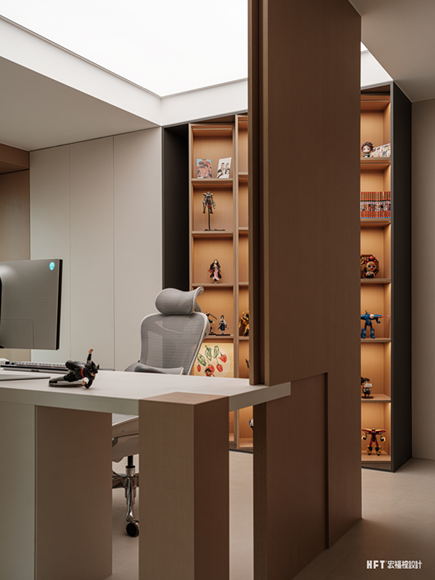 3. 一间卧室拆除局部墙体,改造为半开放式多功能书房