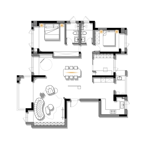 3. 一间卧室释放,扩大餐厅,并增加一处儿童多功能区域