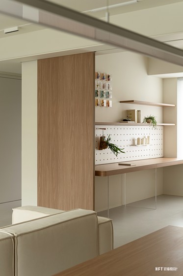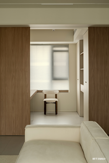 2. 一间卧室拆除部分墙体,设计为可开合的书房