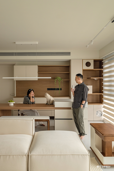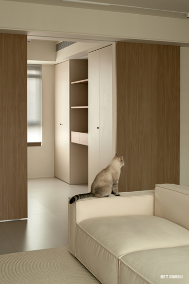 对于这对90后夫妻而言,家是理性与温情的平衡。男主人作为电子工程师,偏爱内敛实用的科技感。两人都注重整洁,希望空间色调舒缓而平和。三只猫的存在,为家中增添了几分灵动的生气。在保留三间卧室的基础上,书房与客厅通过开放互通的设计,让办公与生活自然地联结起来。既满足偶尔工作的需求,也维系着家人间随时可见的陪伴。