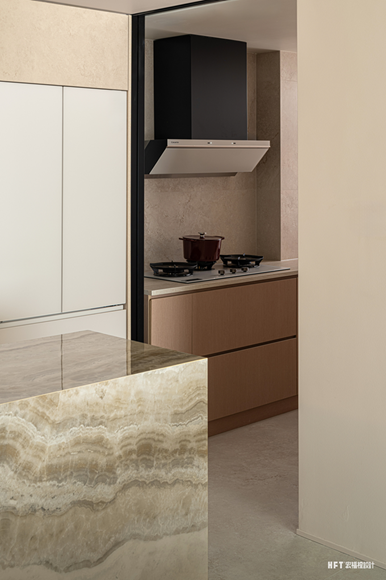 1. 生活阳台与厨房合并后释放部分面积,设计开放式西厨区域