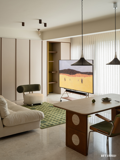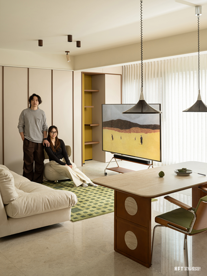精装房的二次改造,不止是褪去现代轻奢的棱角,转向慵懒松弛的中古氛围,更是打造一方能收纳所有热爱与闲适的二人世界。95后年轻夫妻与两岁英短猫,在这里宅家的日子缓缓铺展:他喜爱电竞,她舒展运动或慢做手工,偶尔也并肩看一部电影,举着逗猫棒与猫咪玩闹,陪伴无需言语,只在抬眼间悄然发生。