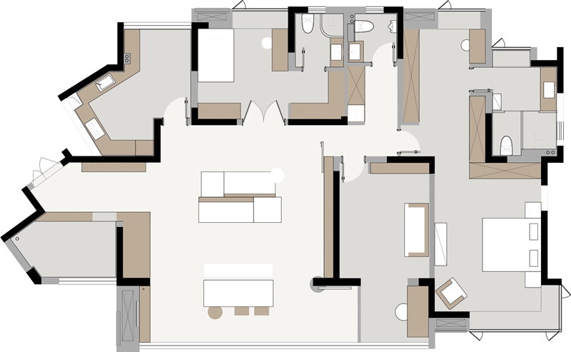 ❻ 一间次卧纳入主卧使用,使其整合为拥有独立衣帽间、睡眠区、卫生间的舒适大套房