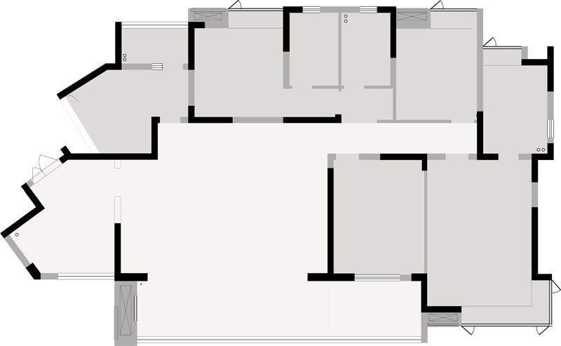 ➊ 拆除玄关隔墙,调整入户与储物设备间面积,修正原始异型结构