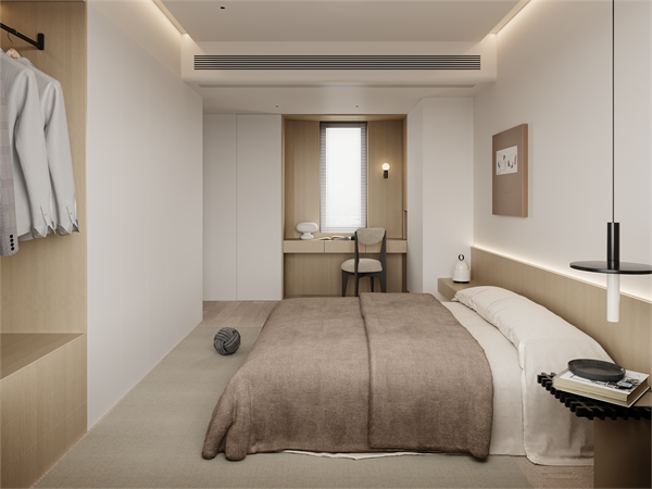 ❹ 主卧拆除原始储物空间,规整格局,提升使用舒适度。