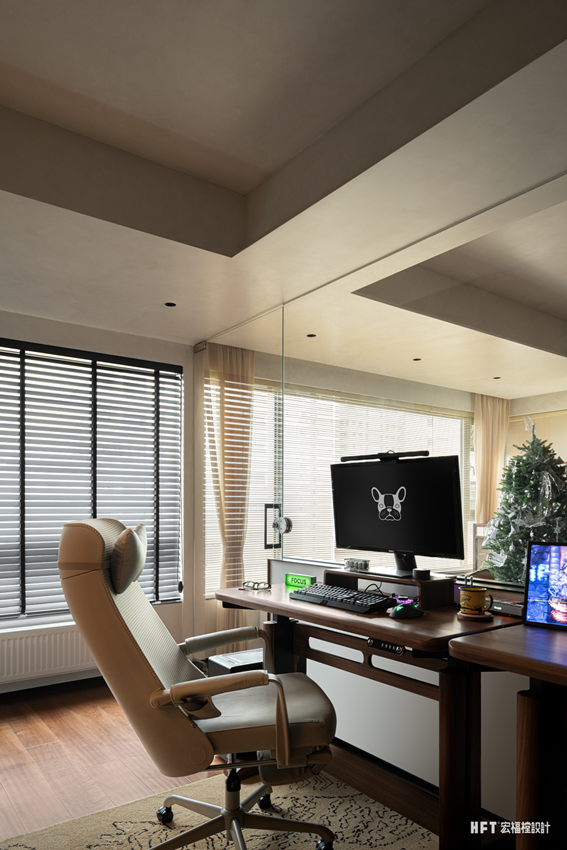 2. 原始横厅客厅较大,纳入景观阳台后,分配适度面积独立为电竞空间