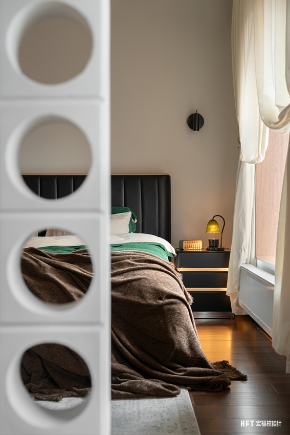 设计的出发点是围绕着无限自由、松弛的生活状态来考虑,三室两厅,原始空间结构较为通透。在满足日常需求之上:客厅加入电竞房,餐厨合并为一体,日式榻榻米房加入隐藏麻将功能,在闭合卧室及娱乐空间之间任意切换,趣味十足。