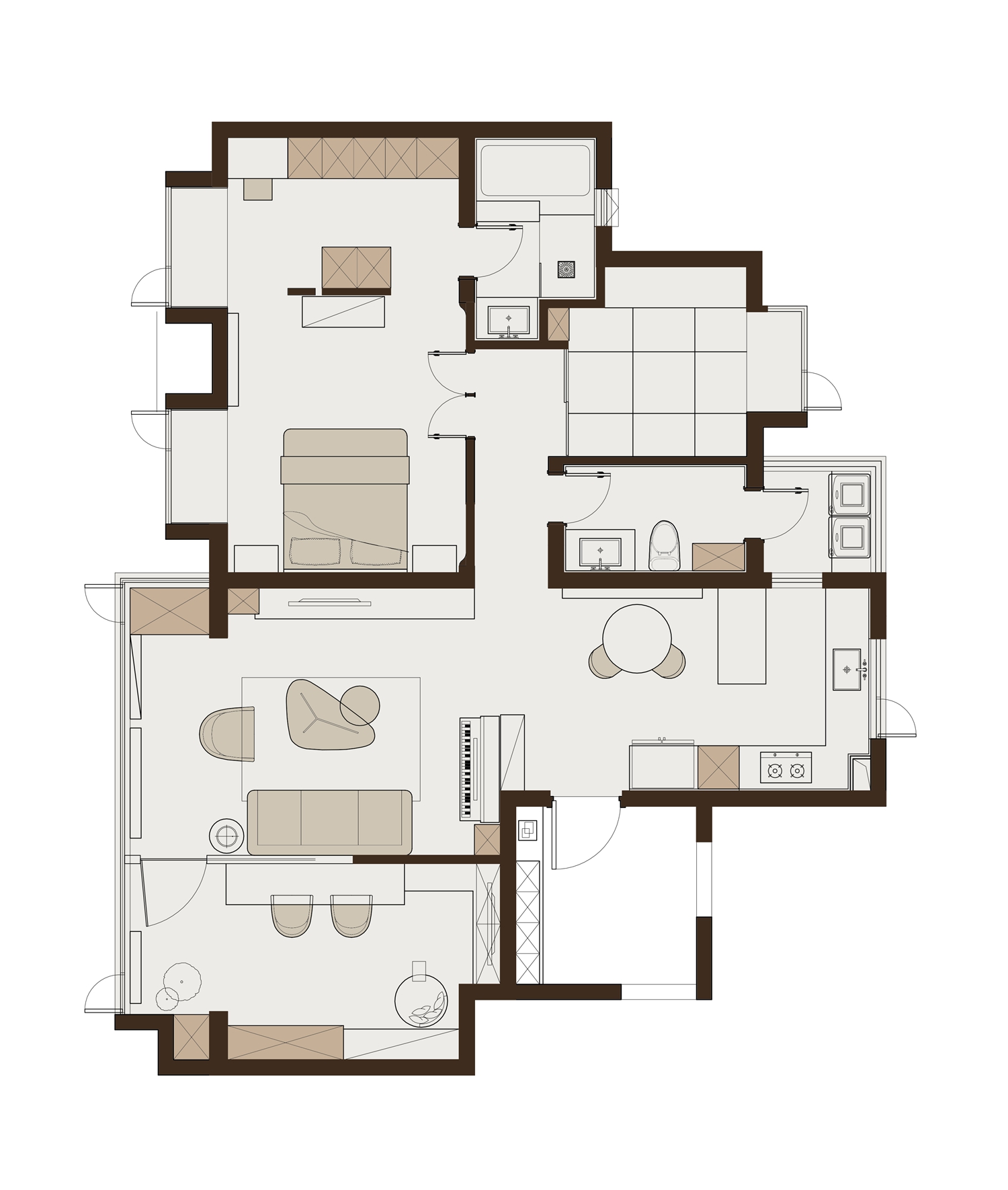 3. 一间次卧与主卧合并,改造为集睡眠、化妆、衣帽、卫生间一体的舒适套房