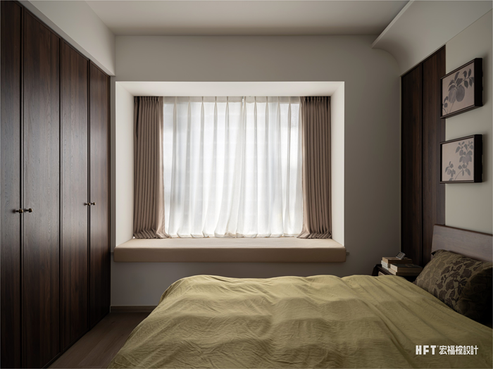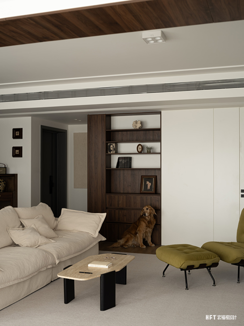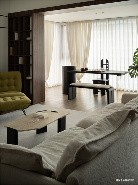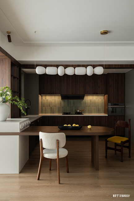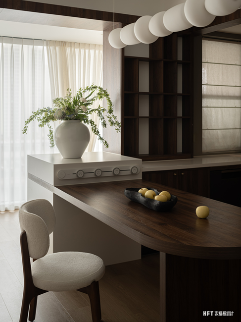 在精装房的标准化框架上进行个性化设计。以整面复合型柜体串联客餐厅,深胡桃木与经典黑的复古基调,搭配奶白色的温柔过渡,在沉稳与轻盈间找到完美平衡。不仅重塑空间秩序,更在原始呆板布局中实现功能与品味的双重升级。
