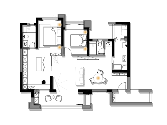 2. 一间次卧改变动线,修正公区视觉