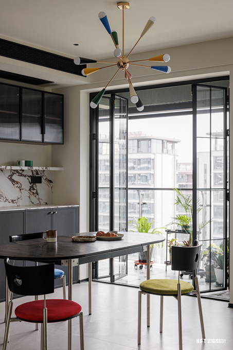 通过精细化布局,增强储物效能,同时赋予每处空间鲜明的属性。保留阳台与露台花台,引入自然光影与绿意,让生活与自然共生。跳跃的鲜亮色彩点缀其间,营造活力盎然的氛围,诠释屋主对生活的热情与向往。