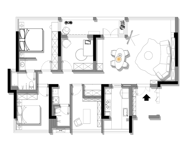 4. 卫生间与阳台合并后退,干区释放于外部,并将家政区融合于此