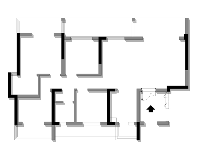 1. 将餐厅与阳台隔墙拆除,改造为玻璃折叠门,使客餐厅最大化保证与外部自然的充分接触