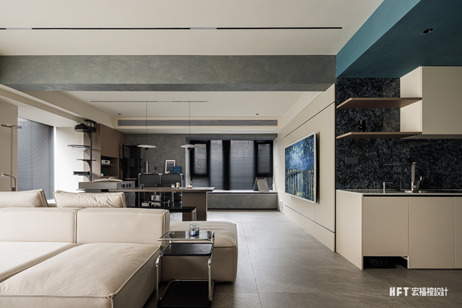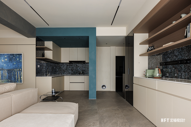 2. 拆除局部墙体,向客厅延伸部分面积后改换动线,开放厨房