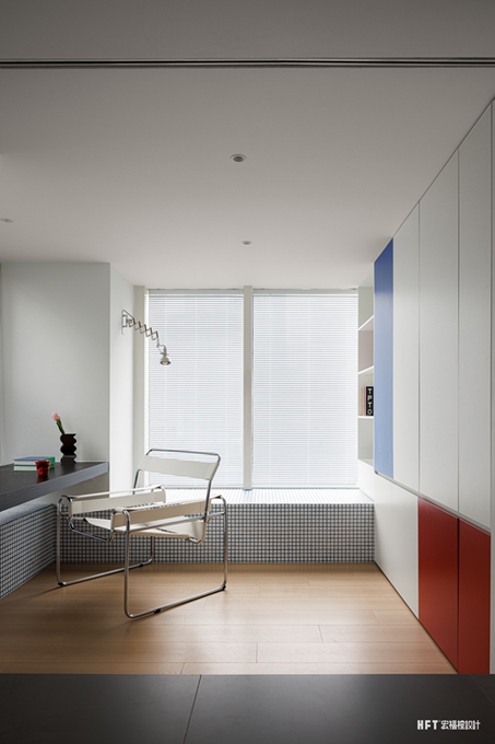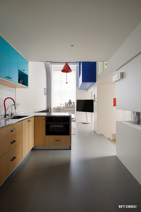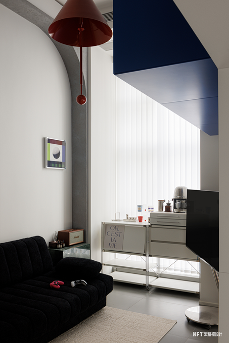 4.4米挑高LOFT公寓设计,以立体盒子为空间核心,巧妙化解卧室局促与收纳难题,通过高低错层的结构赋予纵向空间独特韵律。将蒙德里安式的色彩美学融入几何体块,让功能与艺术完美碰撞。