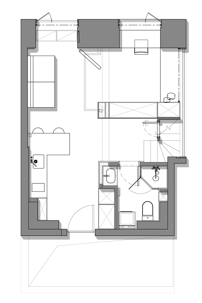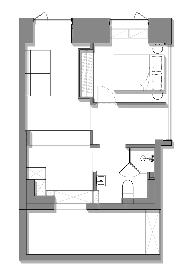 二楼错层设计,在不影响层高的情况下,满足主卧、休闲区、卫生间的多元使用