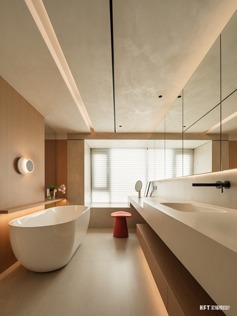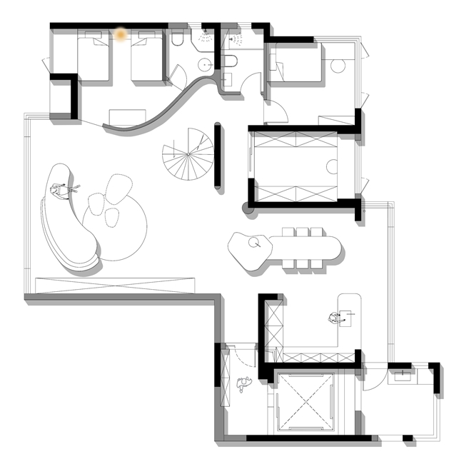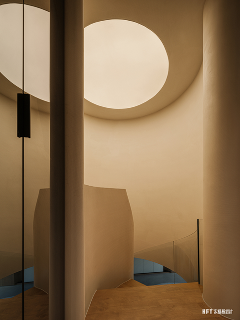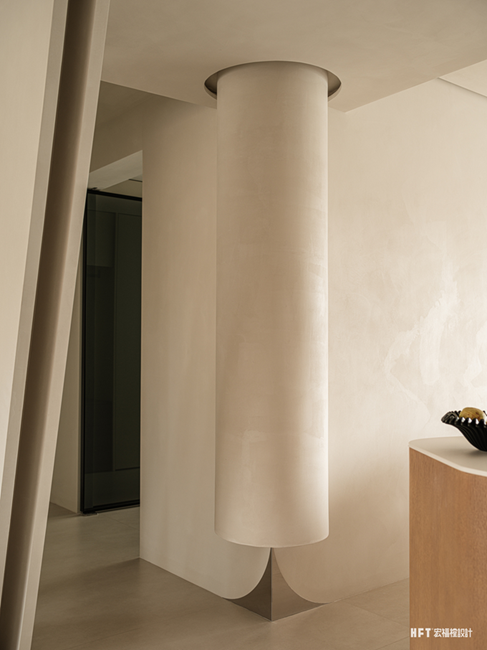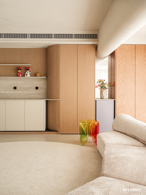 4. 更换父母卧室动线,扩大楼梯走廊空间,同时设计弧形墙体,形成客厅美学端景
