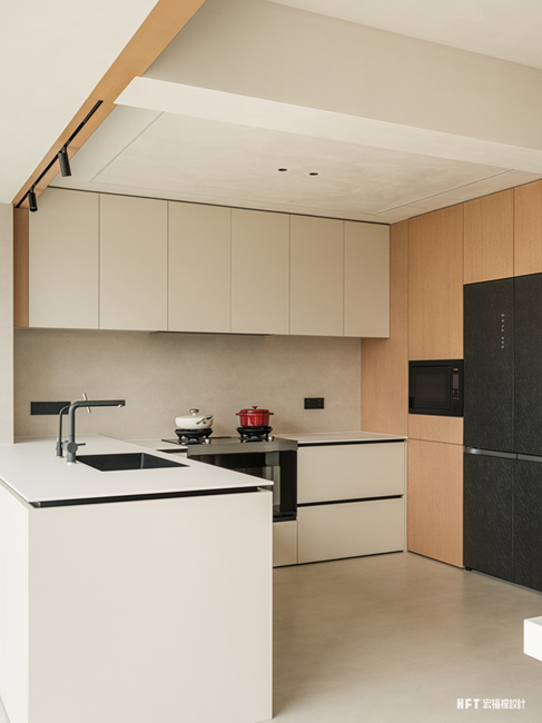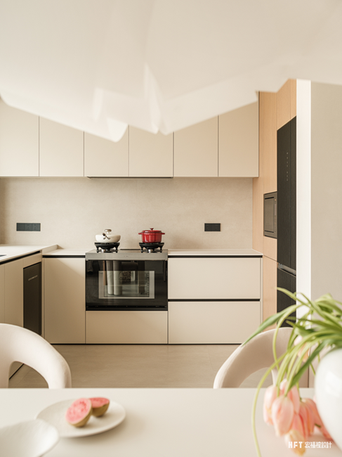 2. 拆除厨房局部墙体,加入岛台,与餐厅形成开放连接的互动状态