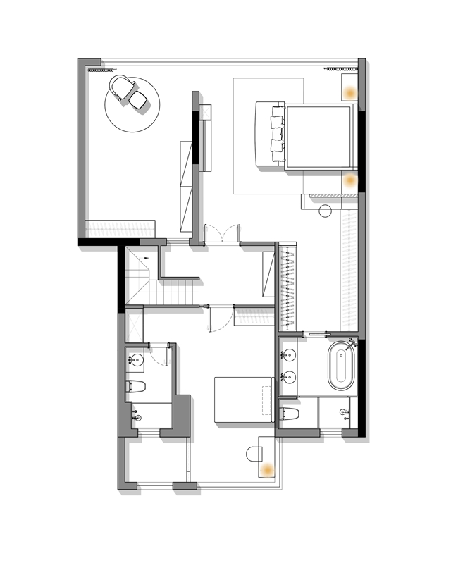 叠拼精装房的改造中,设计以释放空间潜能为出发点,通过重构因搭建而形成的结构限制,重塑流动而通透的居住体验。